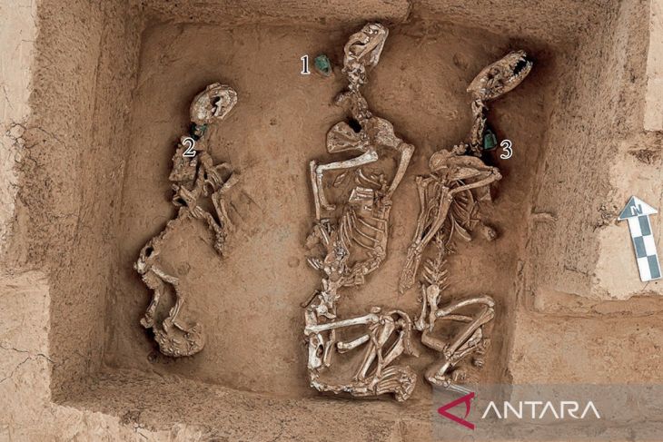 Foto arsip tanpa tanggal ini menunjukkan lonceng perunggu (ditandai dengan angka) di dalam lubang persembahan di zona makam kerajaan Reruntuhan Yin, di Anyang, Provinsi Henan, China. ANTARA/Xinhua/HO-The Institute of Archaeology of the Chinese Academy of Social Sciences/aa.Niu Shishan, pemimpin proyek penggalian itu sekaligus peneliti di institut tersebut, menilai adanya sistem yang kompleks. "Keberadaan koleksi satwa liar dalam jumlah besar serta perlakuan yang terstandardisasi terhadap hewan-hewan ini menunjukkan adanya jaringan yang mapan untuk memperoleh, membiakkan, dan mengelola satwa liar pada masa Dinasti Shang," ujarnya.