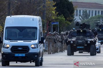 Tim pasukan khusus Gendarmerie Turki meninggalkan lokasi operasi di sebuah rumah yang diduga terdapat tersangka militan ISIS di provinsi Yalova, Turki, Senin (29/12/2025). Dalam operasi tersebut sebanyak tujuh petugas terluka. ANTARA FOTO/REUTERS/Umit Bektas/agr